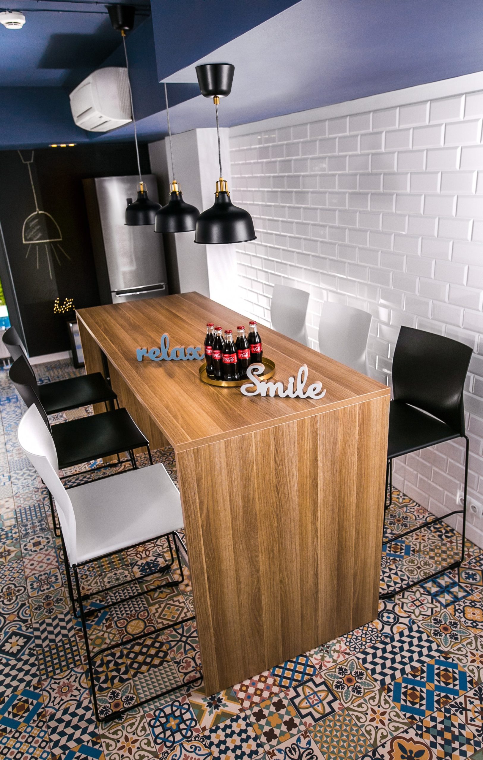 Została ona podzielona na poszczególne strefy – open-space, w obrębie którego znalazło się nieformalne miejsce spotkań/pracy. Do spotkań zespołowych i z kontrahentami stworzone zostały sale konferencyjne z charakterystycznymi akcentami i designerskimi lampami we wnętrzu, a także caffe point nawiązujący stylem do modnych kawiarni. Nowe biuro Clue PR jest nowoczesne i kreatywne.
