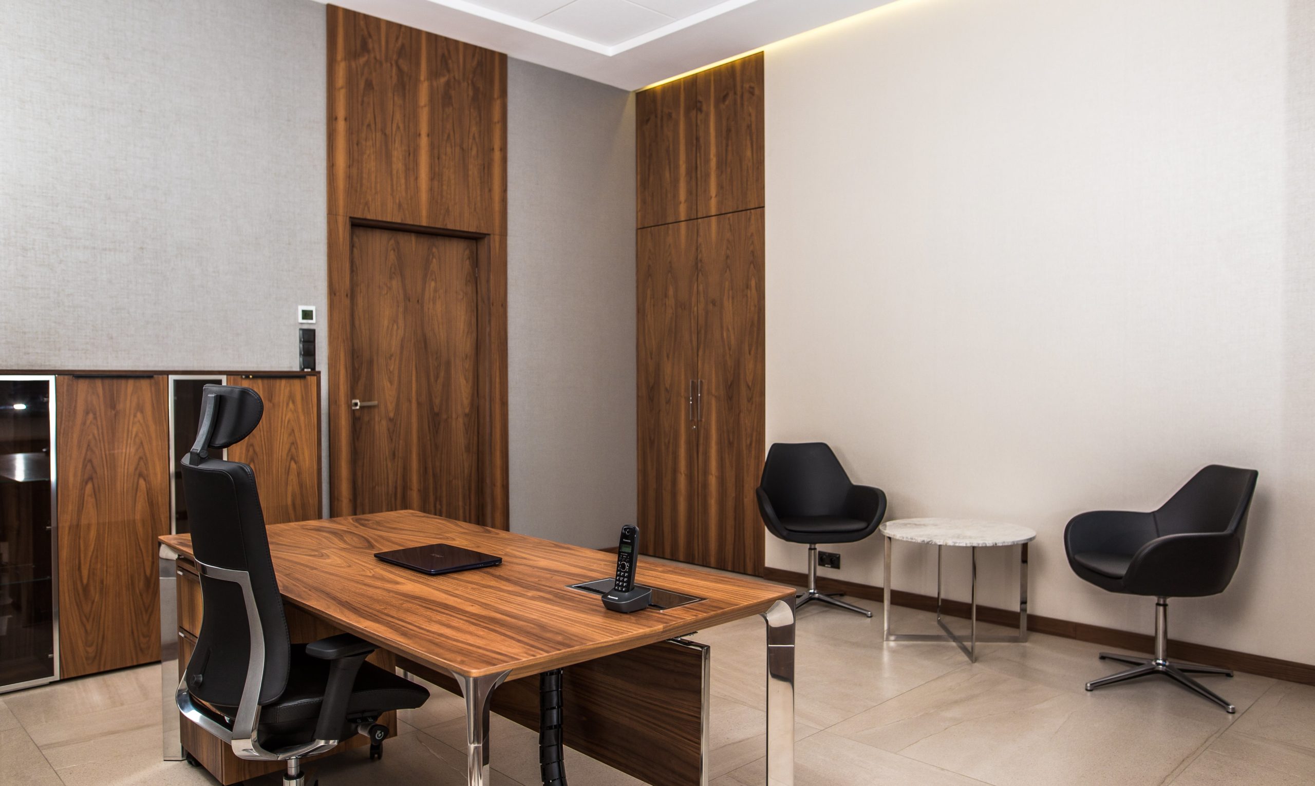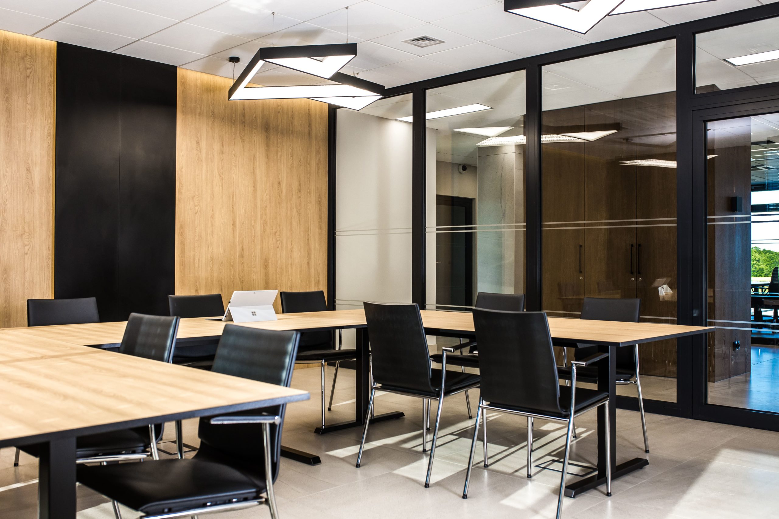 Biuro rodzinnej firmy produkcyjnej zlokalizowanej pod Warszawą. Naszym zadaniem była dostawa wyposażenia, mebli oraz zabudów na wymiar do gabinetów Zarządu, sal konferencyjnych, holu oraz kuchni i łazienek.
